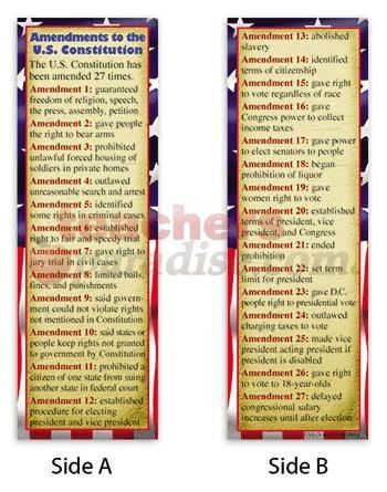 These two-sided bookmarks contain a brief, informative description of each of the 27 amendments to the United States Constitution. 36 bookmarks per pack.