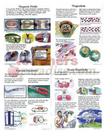 Package includes 4 reproducible activity sheets, a teacher’s guide, and 4 sturdy 17″ x 22″ posters with the following titles: Magnetism, Magnetic Fields, Static Electricity, and Current Electricity. Science.
