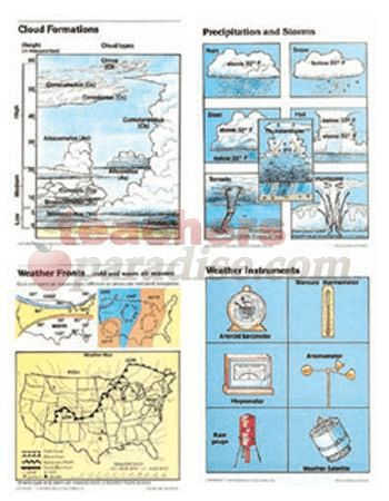 Package includes 4 reproducible activity sheets, a teacher’s guide, and 4 sturdy 17″ x 22″ posters with the following titles: Weather Instruments, Weather Fronts, Precipitation and Storms, and Cloud Formations. Science.