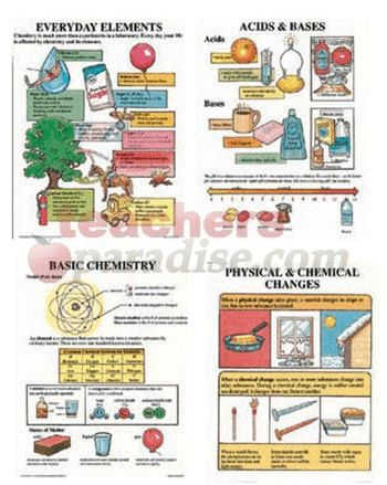 Package includes 4 reproducible activity sheets, a teacher’s guide, and 4 sturdy 17″ x 22″ posters with the following titles: Acids and Bases, Basic Chemistry, Everyday Elements, and Physical and Chemical Changes. Science.