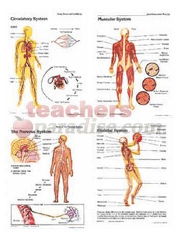 Package includes 4 reproducible activity sheets, a teacher’s guide, and 4 sturdy 17″ x 22″ posters with the following titles: Circulatory System, Muscular System, The Nervous System, and Skeletal System. Science.