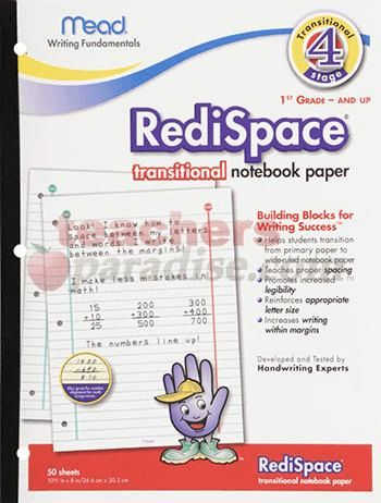 The Redispace? Notebook helps students transition from primary paper to wide ruled notebook paper. This innovative product teaches children proper spacing between letters. It also promotes increased legibility and reinforces appropriate letter size. Th