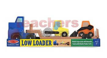 Hauling a steamroller and bulldozer is hard work, and this rugged wooden rig is perfect for the job! This sturdy tractor has a removable trailer with a pull-down ramp for loading and unloading the two included construction vehicles at any childhood worksite!