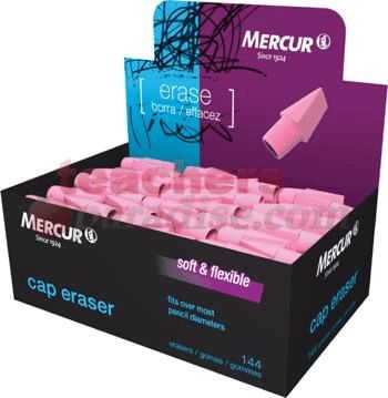 MERCUR USA Colored Pyramid Shape Pencil 144 Count Cap Erasers MER00817
