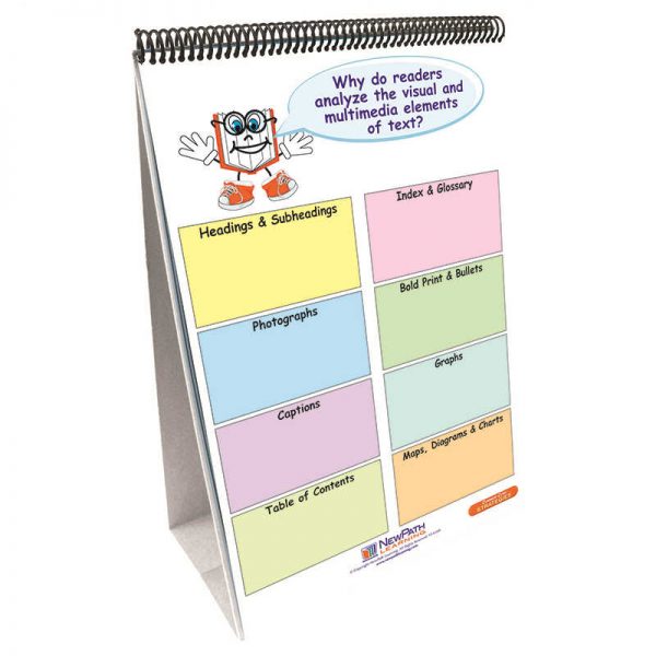 Developed directly from the Common Core Standards and leveled by grade, these unique Flip Charts are designed to enhance and complement any Reading/ELA program. Each set provides graphical representations of the key concepts and student activity templates, along with a series of effective focal points for discussion, lesson modeling and explicit instruction. Perfect for use as learning center activities as well as for individual review and practice! The Grade 5 ELA Common Core Flip Chart Set features 10 double-sided charts which are spiral-bound on a durable, free-standing easel. Side 1 of each page features a graphic overview of a key topic while Side 2 is a “write-on/wipe-off” activity chart for review and reinforcement. Also includes Teacher’s Guide featuring step-by-step instructions for use along with copy-masters and exercises. Charts included are: Identifying Inferences; Using Details to Determine Meaning; Comparing & Contrasting Characters; Determining Word & Phrase Meaning; Identifying Overall Structure of Text; Describing an Author’s Perspective; Analyzing Visual & Multimedia Elements of Text; Compare & Contrast Same Genre Texts; Making Cultural & Historical Connections; and Making Judgments about the Quality of Text.