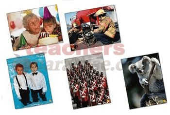 Each set of language cards includes usage ideas and story starters. Photos measure 6′ x 8″. 68 photos per set. Photos in this set focus on family, friends, familiar activities, community activities, community helpers, people from far off places.
