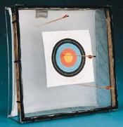 Portable, lightweight indoor-outdoor target.Self-sealing screen that withstands thousands of penetrations.Nylon monofilament material `’remembers original shape”.Screen catches the arrow while the nylon archery netting backdrop prevents it from passing through the target. Portable: collapse and set up in seconds.Frames are sturdy exterior board with steel corner pieces and easy-to-attach screen clamps…Self-standing target at a slight angle for a good shooting position.UPS.