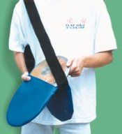 Saddle bag of reinforced nylon, double-sewn for added strength. Holds 2 discs or shot in pouches. With long or short carrying strap. UPS.