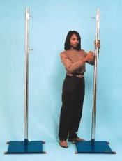 For junior volleyball (6′ high), badminton, deck tennis, tennis & other gym net games…1 3/4″ galvanized risers, heavy steel base plate, floor tips…Floor plate not necessary …With four adjustable ring slides to put net at any height…UPS.