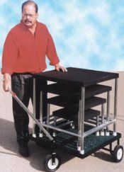 Built to move and store our plyometric steps (steel or wood), free weights, mats, and other heavy gym equipment…This heavy-duty cart is made of steel with good quality tires and swing-away `T’ handle… Cart measures 31″W x 31″L.