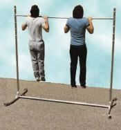 Can be used by up to 4 people… Galvanized steel bar adjusts from 5’6″ to 7’…Risers and base are made of heavy-duty, durable 1 3/4″ galvanized plated tube…Cross-bar constructed of 1 1/4″ galvanized plated tube…Extra wide no-tip base has no-mar rubber pads that will protect floors…55 lbs… Freight Shipments… Some assembly required.