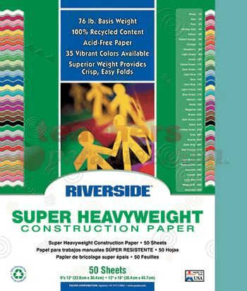 The only super heavyweight 76 lb. groundwood construction paper with 100% recycled content! It has a soft eggshell finish and is available in 30 colors and one assortment. 50 sheets per package. Acid free. 100% recycled fiber content and recyclable.