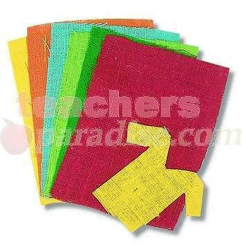 Burlap provides an attractive texture for many craft projects. Each package contains burlap sheets in Yellow, Light Blue, Red, Orange, Light Green and Dark Green. Cuts easily for molding, sculpting and gluing.