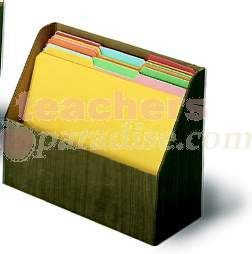 Organize your files for easy reference. Long angle cut reveals files at a glance. Durable and transportable. Woodgrain print fits in any office or classroom. Recyclable.