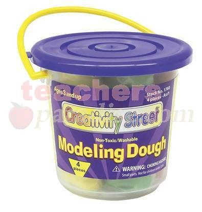 Bucket includes 4 packages of 3 oz. dough in primary colors. Extremely soft and pliable. Ideal for toddlers and young children.