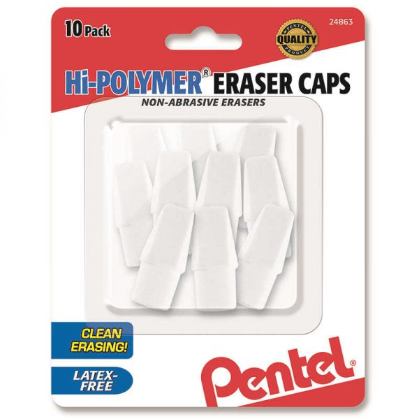 PENTEL OF AMERICA HI-POLYMER WHITE CAP ERASERS 10PK PENZEH02BP10