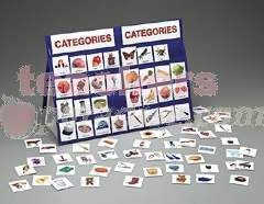 Table Top Pocket Chart Sets, Categories Kids will enjoy sorting and classifying as they find and match the four tiles in each category… like things you wear on your feet, fruits, things that swim, etc… Set includes 26 different categories with over 100 tiles depicting photos of real objects, quality nylon pocket chart with storage pouch, table top stand and reference guide. Self checking.