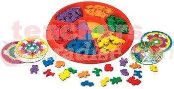 Kids love the feel of the soft Lauri r Crepe Rubber counters as they enjoy sorting, classifying, patterning, and matching. Our uniquely designed sorting tray with 6 changeable center sorting discs allows kids to sort all on their own by color, shape, size, item, and more. Includes six sorting shapes, in two sizes – all in 6 different colors; 216 sorting piece in all! Sturdy six compartment tray measures 15 2″ diameter with quality backing for extra stability and strength. Activity guide included. Ages 3 and up.