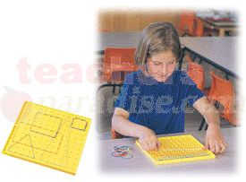 One-sided durable plastic board with an 11 x 11 pin square array. Related Categories: Geoboards