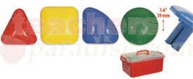Set of 64 giant pegs in circle, square, triangle and corner shapes and 4 colors. Size: 1.5 x 1.4 inches (39 x 36 mm). Easy for little hands to hold and manipulate. Plastic storage case provided. Related Categories: Giant Pegs