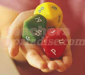 A set of 6 ten-sided dice showing consonants, vowels, essential vowel sounds, and digraphs. Just take two consonant dice (red), and the single vowel dice (yellow), and roll them to make dozens of consonant/vowel/consonant combinations, or arrange them to make specific words. You can use the vowel sounds dice with the consonant dice to make words like `meet, weed, wood, food’, or introduce digraphs for word beginnings and make words such as `sheet, shoot, cheap, cheer’. Colour-coded to correspond to Word Building Letter Flips. Related Categories: Letters