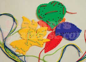 Set of 5 fun leaf shapes with laces. Related Categories: Lacing