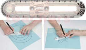 You can draw circles, triangles and straight lines with this unique 4-in-1 drawing compass/ruler, construct, copy and read angles, measure and convert inches and centimeters, and create patterns. To use the compass, pinch and slide the cursor to the desired position and lock it, place your finger on the transparent swivel disk, place your pencil point in one of the two cursor holes and draw a circle. Inch markings to 4.3” (11 cm). Compass comes in a solid opaque or clear (overhead) version. Related Categories: Angle