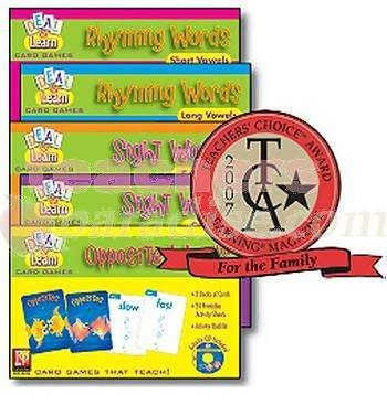 Beginning readers and struggling readers alike will love practicing important reading skills with these delightful card games which are variations of traditional favorites-Go Fish, Old Maid, and Concentration. The colorful decks make great flash cards, too! Bonus CD-ROM includes 24 ready-to-use activity pages (files are easily accessed with either a Mac or PC). Rhyming Words Set – Short Vowels features: – Rhyming Words with Short Vowel Sounds – Deck 1 has words that start with a single consonant – Deck 2 has words that start with blends Rhyming Words Set – Long Vowels features: – Rhyming Words with Long Vowel Sounds – Deck 1 has words that start with a single consonant – Deck 2 has words that start with blends Sight Words Set 1 features: – Pre-Primer & Primer Sight Words – Based on the Dolch Basic Sight Word List Sight Words Set 2 features: – Primer Sight Words – Based on the Dolch Basic Sight Word List Opposite Words Set features: – Opposite Words – Deck 1 has opposite combinations that are somewhat easier than Deck 2
