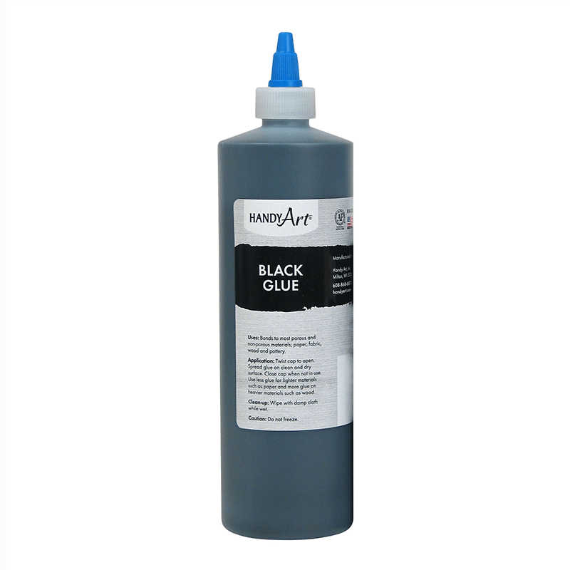 Handy Art? Black Glue can be used to create black outlines or as a contrast color. Great for faux stained glass and paint resist projects. Bonds to most porous and non-porous materials such as paper, fabric, wood and pottery. Certified AP non-toxic, made in the USA.