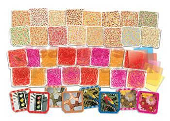Have fun with color vision! Conduct tests to see who can and cannot see colors normally and experience what it’s like to be color blind. Start off with the “hidden image” cards. Look at the colored dots and if you see normally, you will make out a simple image. These images have been carefully selected for younger children. Flip the cards over and see a vivid scribble. The kit includes special color filters. When you lay one of the color filters over the scribble, an image “magically” appears. These images will appear for both normally sighted and color blind students. It’s a fun way to learn about camouflage! 8 cards show images that have been altered to give normal sighted students an opportunity to see what color blind people experience. The kit is a great way to introduce a serious issue. Cards are 6 x 6″ (15 cm). Color filters are 5 x 5″ (13 cm). Includes complete teacher guide. 24 double-sided cards, 6 color filters.