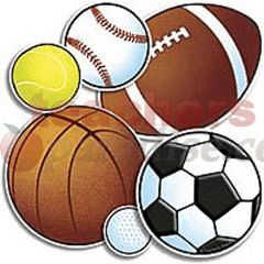 Accent Punch-Outs: Sport Balls!Mini Bulletin Board Displays!Perfect accent for any bulletin board! Can also be used as name tags, notes, rewards and much more! Coordinates with many of our Charts, Banners, Borders with Corners, Name Plates, and Bulletin Boards! Plastic-coated for durability and color-fastness! (Dealers: Accent Punch-Outs hang on your bulletin board racks. Hang two sets side by side and take half the space as other accent sets!).