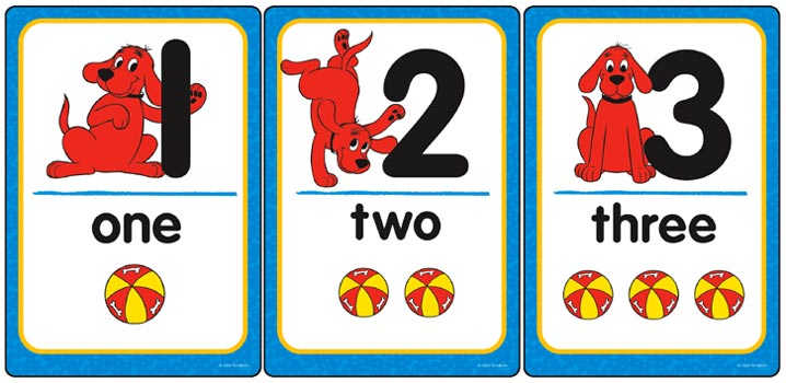 36 colorful punch out pieces including adorable 0-30 number cards. Teach one to thirty with these big, bright number cards ready to hang on your wall! Kids will love learning to count with Clifford! Each card is 5.875″ wide x 8.5″ high. Included an activity-packed teaching guide.