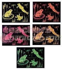 Bright, dazzling real fluorescent color appears by just scratching with a stick through the top black coating! Stick and instructions included. 8 1/2″ x 11″. 5 assorted colors.