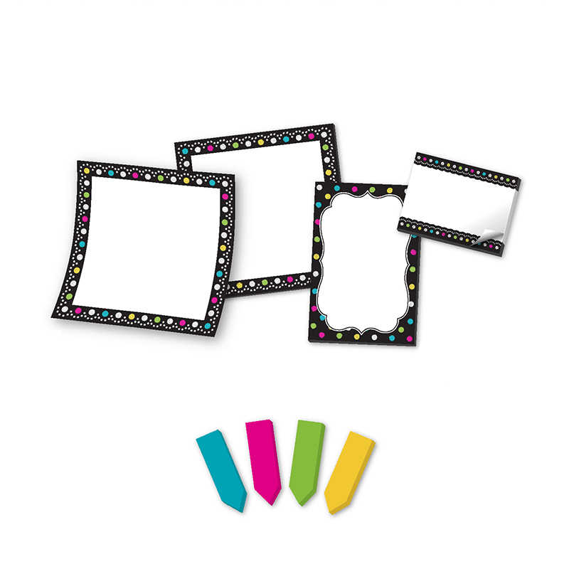 Add style to messages with sticky notes that match your favorite classroom theme. Each set includes three designer sticky notepads and four sticky flag pads.