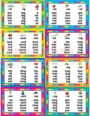 Surround young readers with colorful displays of word families. This group of word charts includes labels and 7 charts that measure approximately 12 x 18 each. All pieces are UV coated for extra durability. A 4-page teacher resource guide is included.