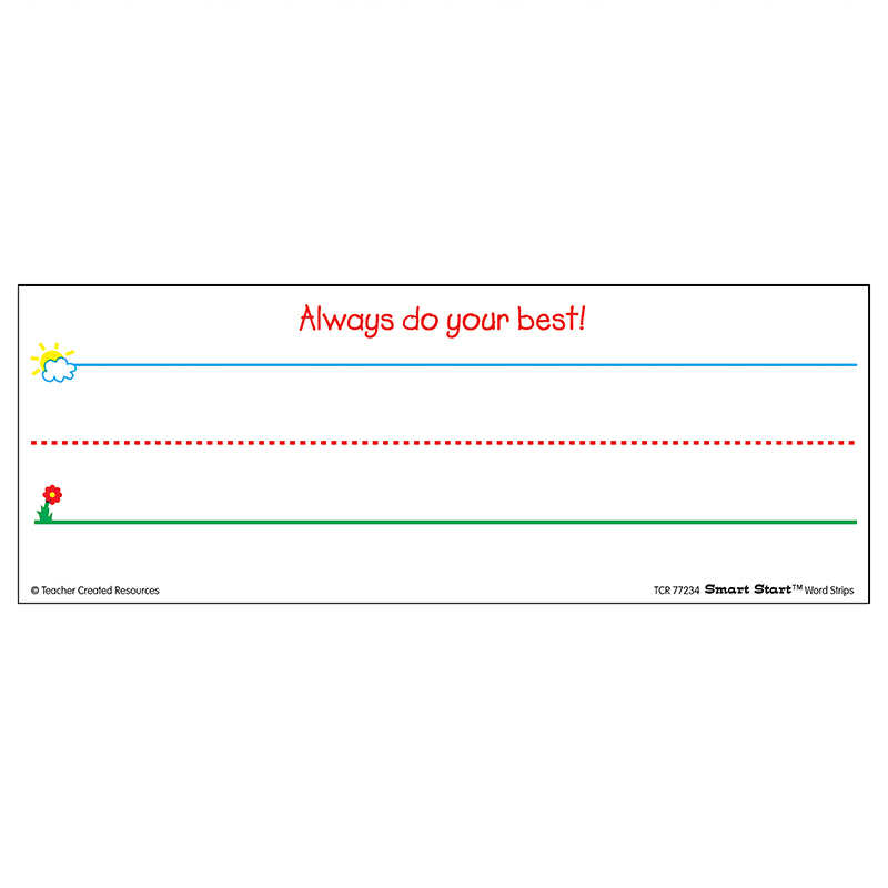 Help students master printing and writing skills using the Smart Start? “Sky to Ground” concept. The ruled strips feature colored lines with sky and ground graphics to reinforce the “Start at the Sky and Pull Down to the Ground” approach to proper letter formation. The write-on/wipe-off surface allows students to practice again and again. These handy strips are easily repositionable and stick to any magnetically receptive surface. Each piece measures 8″ x 3″. 18 pieces per pack.