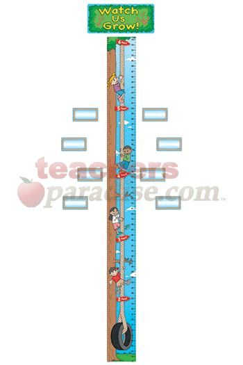 Use this display to help students record growth and learn about measurements. The 4-page teacher’s guide suggests a wide variety of related activities. 39 pieces, including 35 name tags. Growth Chart measures 6″ x 63″. Shiny, protective coating adds durability.