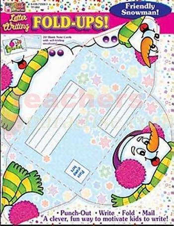 Friendly Snow Man Letter Writing Fold-Up! Punch-Out, Write, Fold, Mail,… A clever, fun way to motivate kids to write! 20 Blank Note Cards with self folding envelopes!