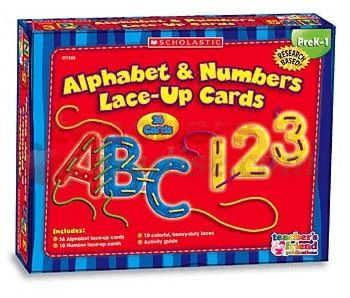 26 alphabet lace-up cards, 10 number lace-up cards, 10 multi-color 42″ heavy-duty laces, 2-pg activity guideÿÿÿLace-Up Cards: 10″ x 7.5″ Laces: 42″ with 1″ sewing ends Box: 8.5″ x 11″ x 2.25″