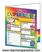 A super folder for every SUPER KID, with motivational, instructional check lists on the back! Use a fine-point, permanent marker to write on these plastic-coated folders. 2-pocket folder 9″ x 12″