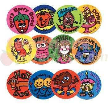 5 8″ scratch ‘n sniff stickers.12 scents, 36 designs. 432 sticker per pack.