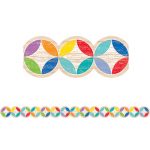 Quality scalloped corrugated decorative trimmer coated with non-fade ink. 2¼” wide x 50′. Bright Blue. Decorative borders create the appearance of a Framed edge to dress up any bulletin or display board. Each border is corrugated on one side. The sturdy corrugate provides a three-dimensional appearance on any flat surface. Each border bends, molds, turns and twists to create unique, layered designs. Trimmer is bright & cheerful yet inexpensive. Each roll will border two 4×8 bulletin boards. Recyclable. Bundle of 10 Trimmer Rolls.