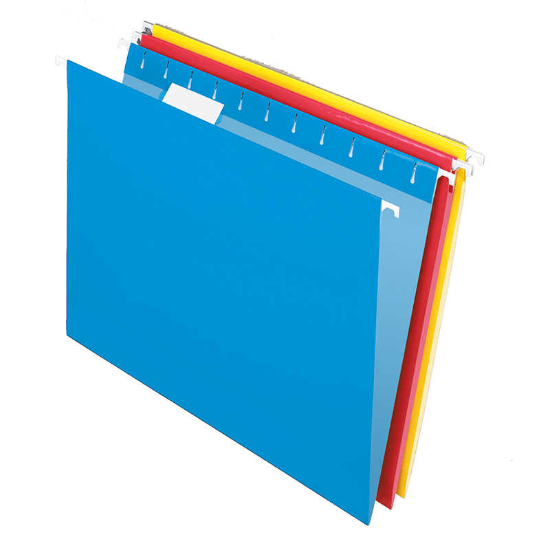 Coated hanging rods for smooth sliding. Lighter interior prevents misfiles. Includes clear tabs and blank inserts.