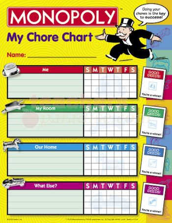 TREND ENTERPRISES INC. Chore Charts Monopoly (25 Charts 8-1/2″ X 11″) T-73103