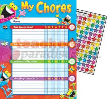 Motivate kids to set goals and develop a sense of accomplishment. Easy to customize to each child. Charts include 100 sparkle star stickers for rewarding progress. 25 charts; 8 1/2″ x 11″.