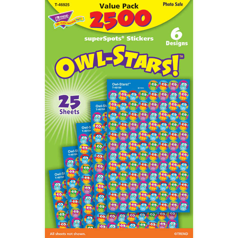 TREND ENTERPRISES INC. OWL STARS 2500PK SUPER SPOTS STICKERS T-46925