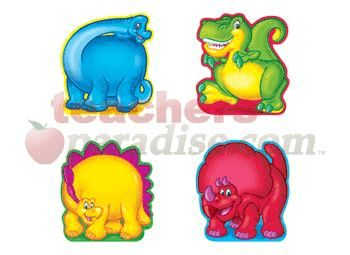 Variety and value for all your teaching needs! Packs feature an array of popular decorative themes for learning activities, displays, and crafts. Designs complement TREND bulletin board sets and coordinated d?cor. 4 dinosaurs, 36 pieces total. About 5 1/2″ tall.