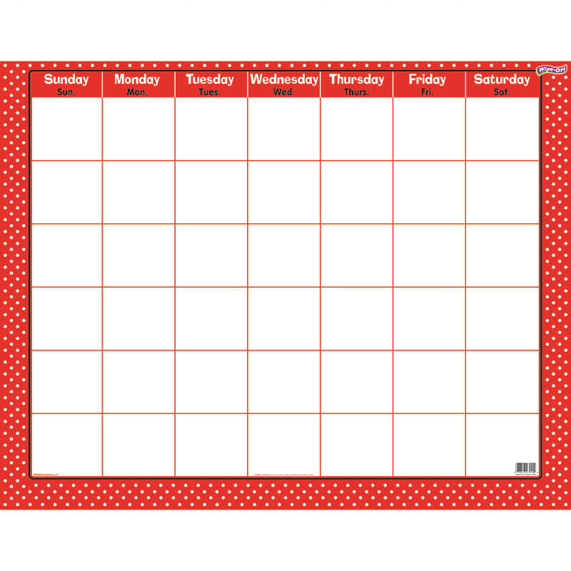 TREND ENTERPRISES INC. POLKA DOTS RED WIPE OFF CALENDAR MONTHLY T-27024