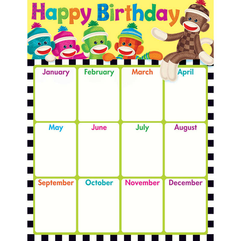 Colorful sock monkeys are hanging out, ready to celebrate birthdays each month. Back of chart features reproducible activities, subject information, and helpful tips. 17″ x 22″ classroom size. Coordinates with Sock Monkeys Collection.