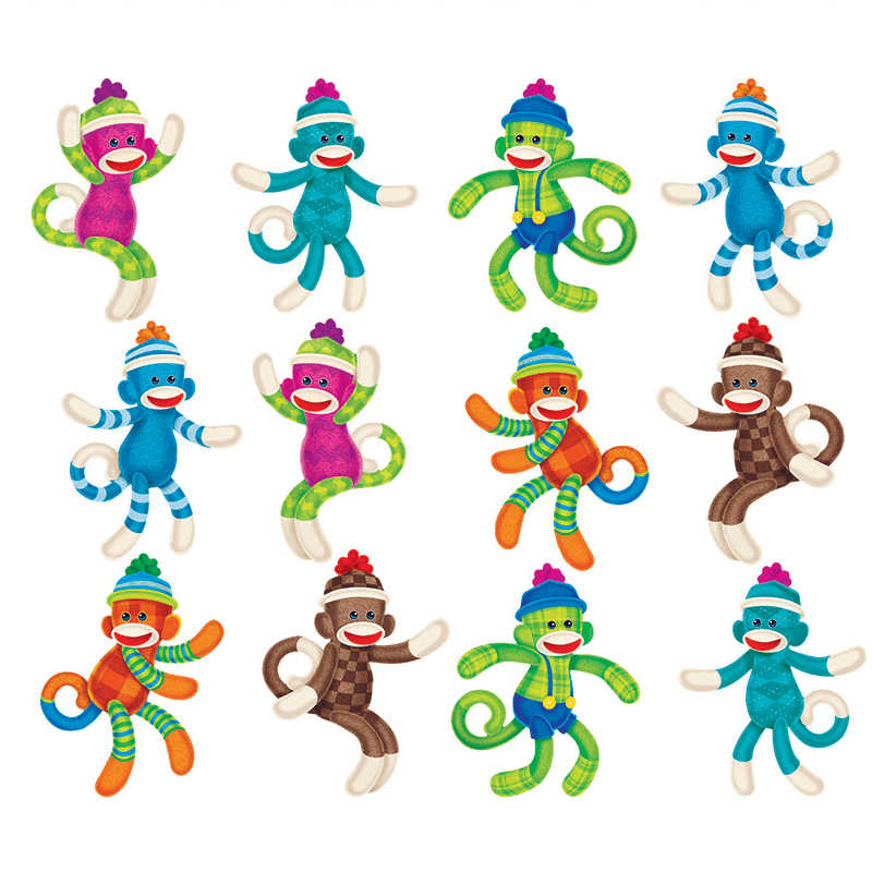 The word’s out! You can add cheer and creativity everywhere with playful mini packs. Accent the positives in life and learning by creating any number of projects and displays. Use for games and labels too. Endless possibilities! Precut and ready to use. Durable and reusable. 3″ tall. 12 designs, 36 pieces. Mirror images are perfect for creating puppets and two-sided displays! Coordinates with Sock Monkeys Collection.